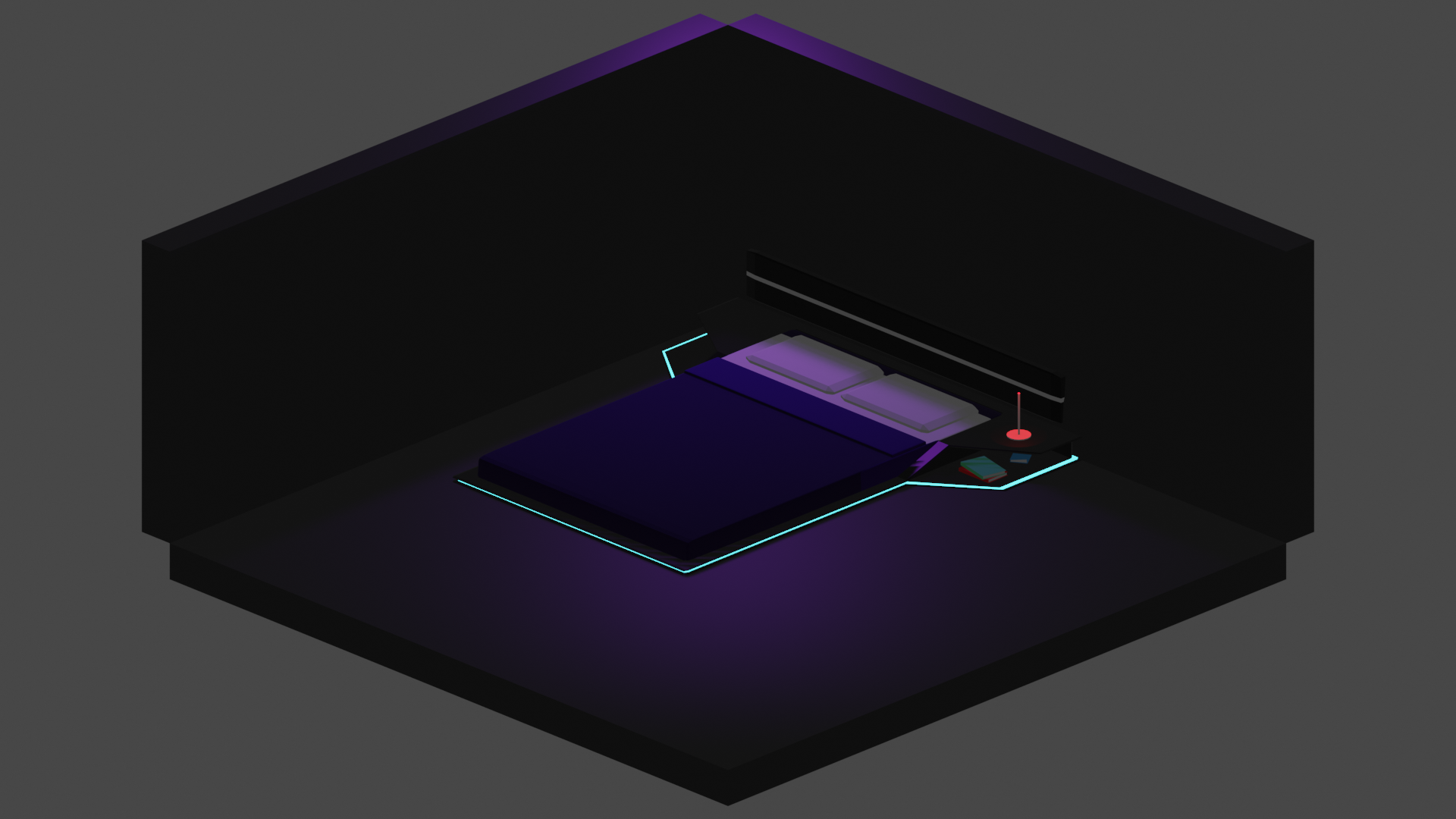 A droite, c'est un projet pas encore achever : une petite chambre. L'extraction a été réalisation grace à un add-on qui permet de rajouter des caméros isométriques dans le logiciel.