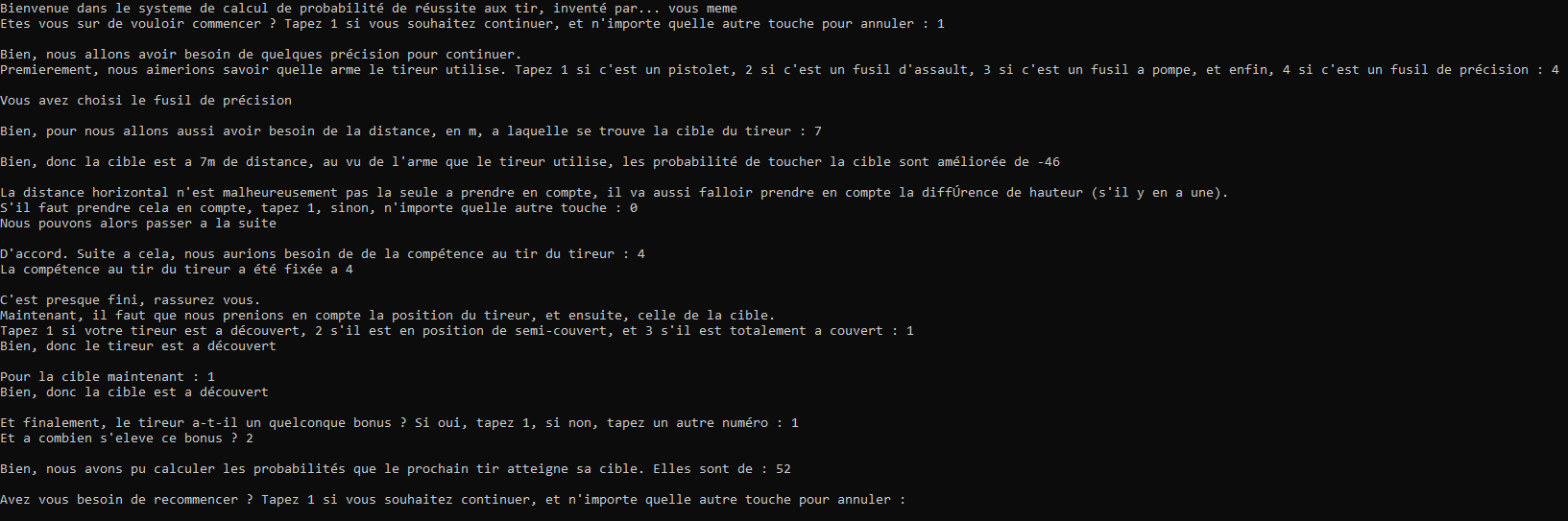 Cet algorithme m'est d'une grande utilité, car il permet de calculer avec précision quelles sont les chances qu'ont une tir d'arme à feu d'atteindre sa cible.